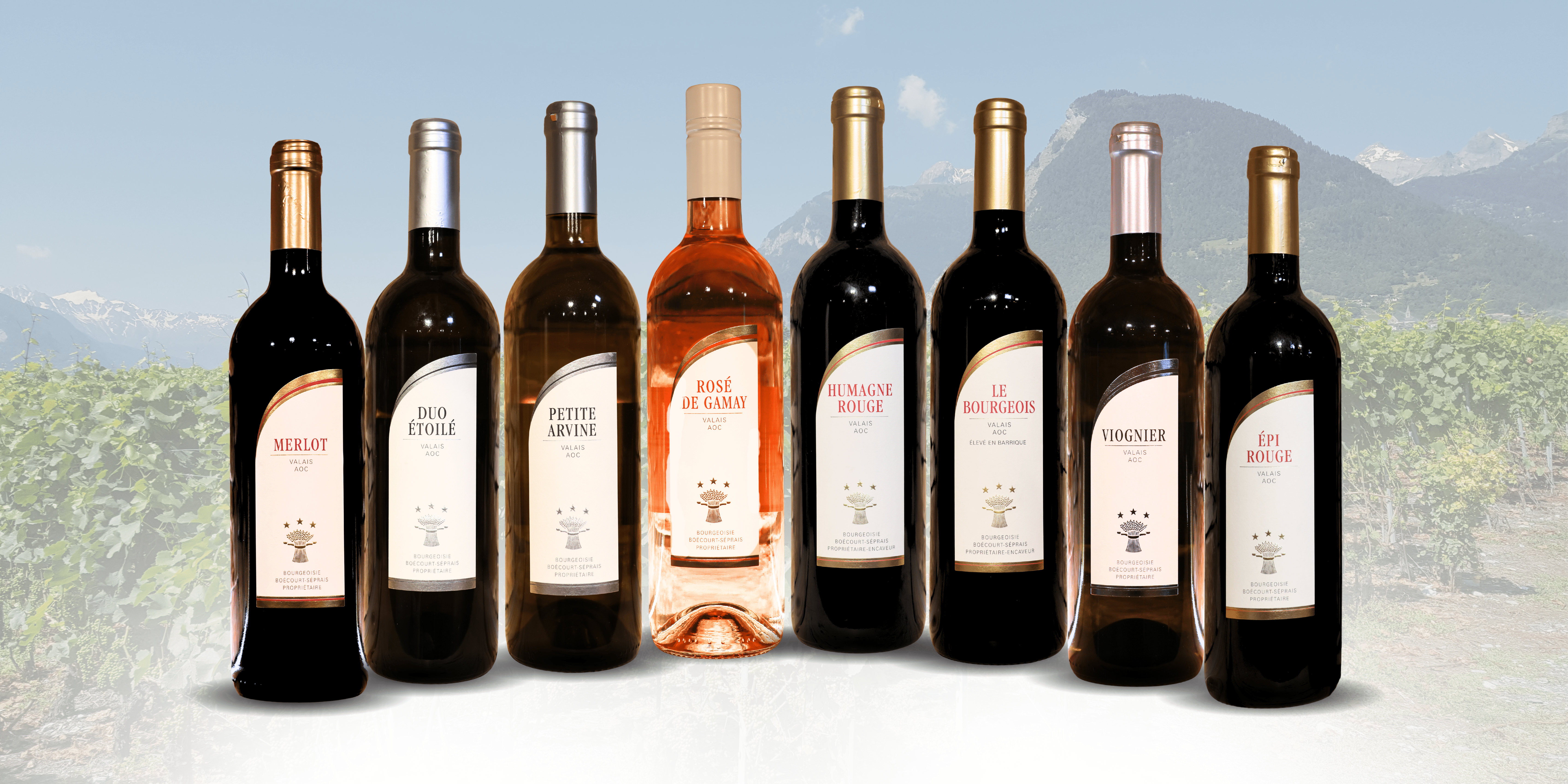 La Bourgeoisie de Boécourt-Séprais est propriétaire d’un vignoble au Valais, acquis en 2006, où les grappes de raisin gorgées de saveur ont mûri sous le soleil des coteaux de Chamoson et d'Ardon. Au fil des saisons, nos vignerons apportent tout leur savoir-faire afin d’offrir des vins de qualité dégageant tous leurs arômes.